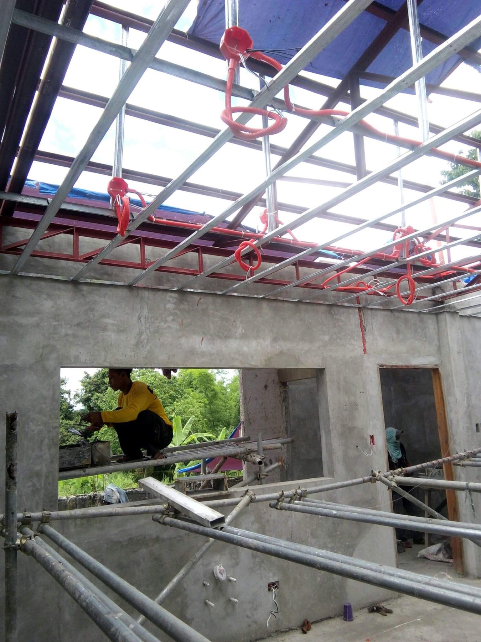 Currently, we have just got the roof on, the ceiling boards installed and the base coat of paint on the walls. Over the coming week, we hope we will be able to finish the painting, then will immediately start on the main floor tiling. With luck, we will be ready to turn over this home construction project around the end of September.